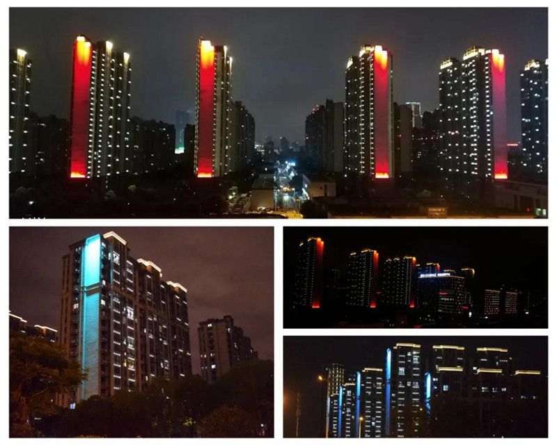 学士府、紫东南苑,顶部暖黄色,表现天际线。侧面向下洗亮,色温由暖黄色-暖白色-白色过渡,配合南北立面双向相对洗墙效果,似一扇扇打开的通城之门,喜迎八方宾客。“见光不见灯”的精心设计,一条绚丽多姿的彩带点缀在城区核心地带,闪耀全城,许多市民走上街头,拍照留念。 智光慧城