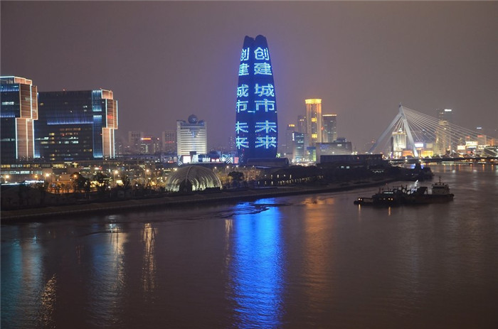项目介绍:宁波财富中心位于浙江宁波市。作为宁波市“中提升”战略重点项目和宁波市重点工程建设项目,宁波财富中心项目总用地面积约2.5万平方米,建筑高度188米,是目前宁波三江口建筑群中单体规模最大、建筑高度最高的建筑。该项目采用爱克莱特点光源,6颗5050贴片RGB灯珠,1.8W,全部采用钢丝安装方式,对外墙结构0破坏。亮灯后成为宁波独树一帜的灯光亮化经典之作。