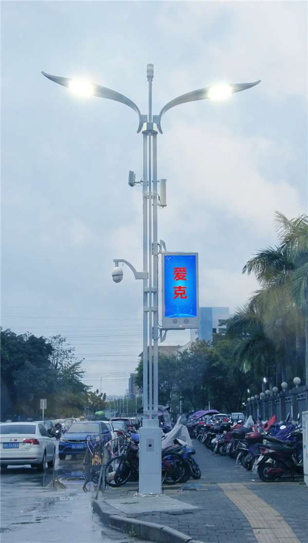 近日,爱克莱特在公司所属健仓科技园区成功落地了两款智慧灯杆样杆,灯杆配备气象传感器、路灯控制器、wifi基站、数字显示屏、一键呼救、充电桩等集成设备,打造智慧园区标杆示范。