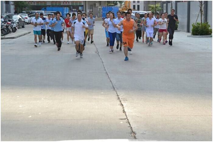 人员就位,爱克公司董事长谢明武先生、及其各部门经理融入到了长跑队伍中,与小伙伴们热切交谈,议定比赛规则——冠军队由公司专车接送,输了的男生做俯卧撑,女生做深蹲并步行回公司。